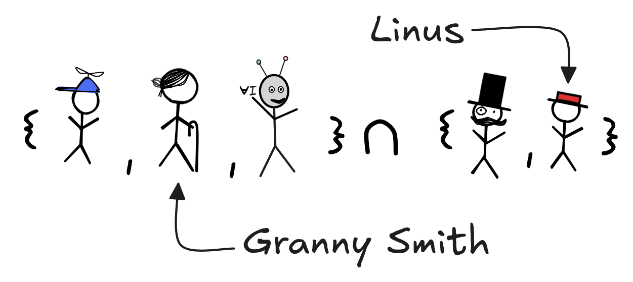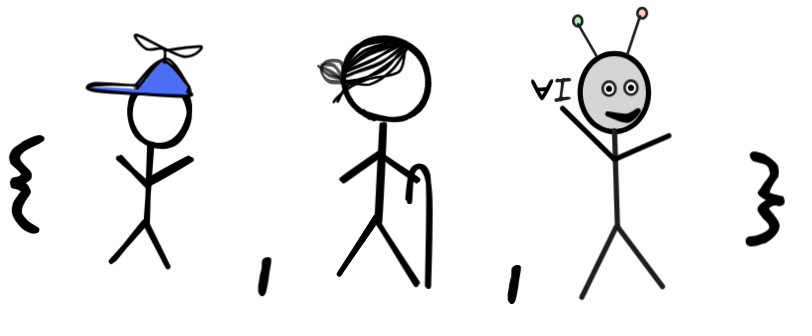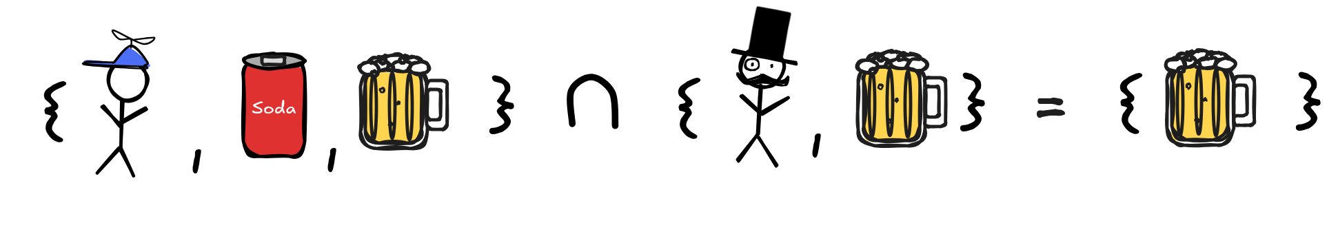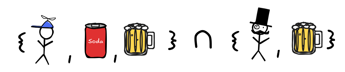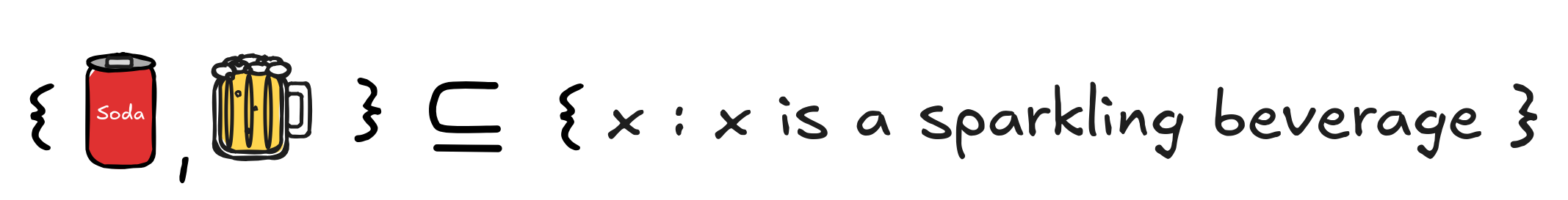 Since both the soda and the beer are sparkling beverages, they are members of the set { x : x is a sparkling beverage }