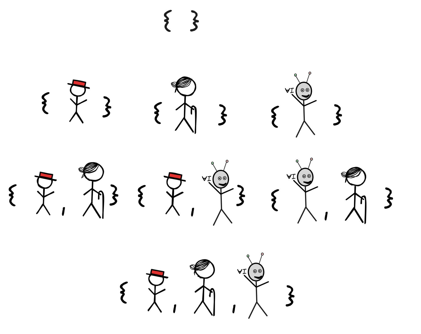 There is a total of 8 subsets. Note that the empty set, { }, is among them, according to number 8.: