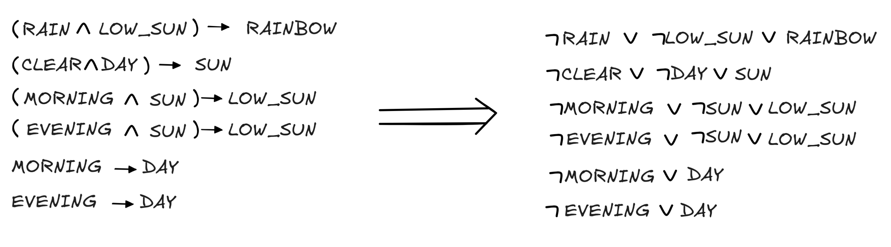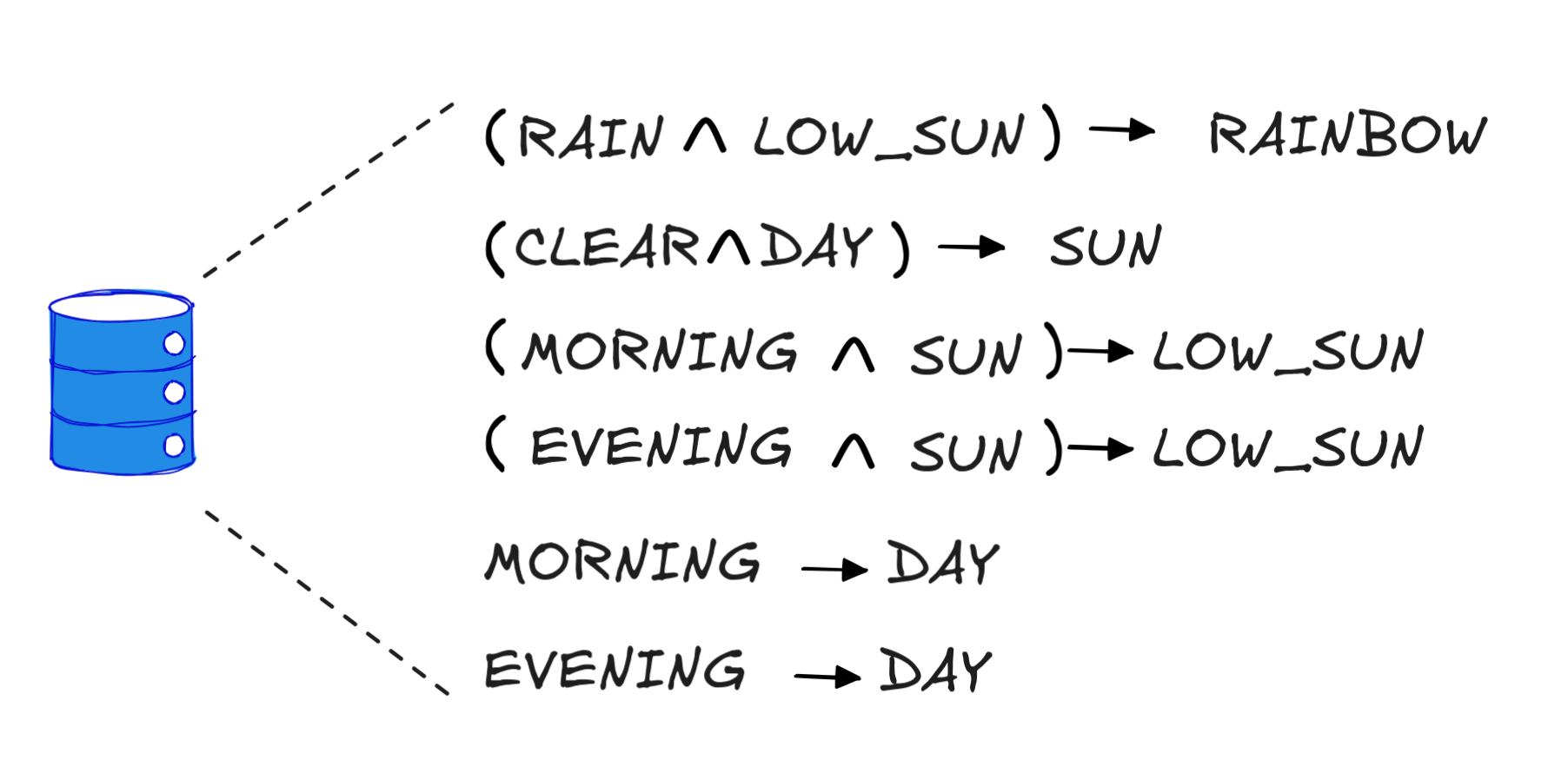 Or, imagine a very simple meteorology KB, which might contain the following information: