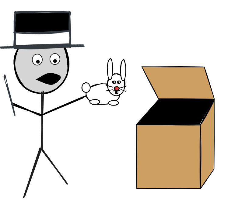 Say a magician places a rabbit in a cardboard box and they close the box. After