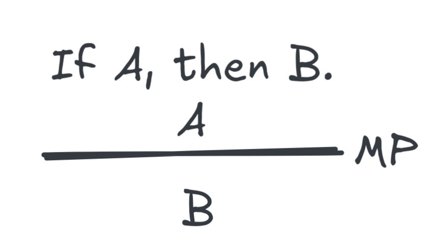 the deductive inference pattern known as modus ponens (MP), which licenses