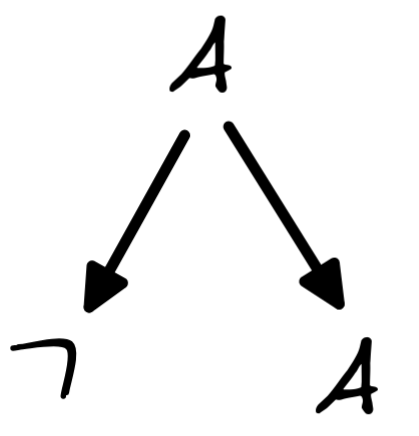 Then, we apply rule 5 to the right-most branch. This rule rewrites this A into (A\land A), which creates five more branches: