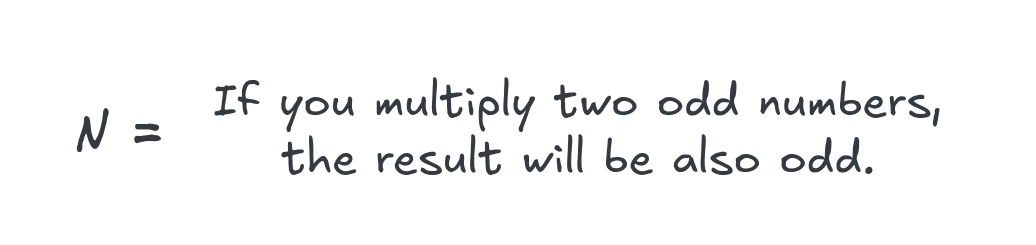and both a and b are odd. I observe that c is an even number, then there’s a few options again. Perhaps I was wrong to believe that a x b = c , or perhaps I was wrong to believe that a and b are both odd. Or perhaps my observation that c is even was wrong. An arrogant person may even believe that their maths book is wrong in stating N .