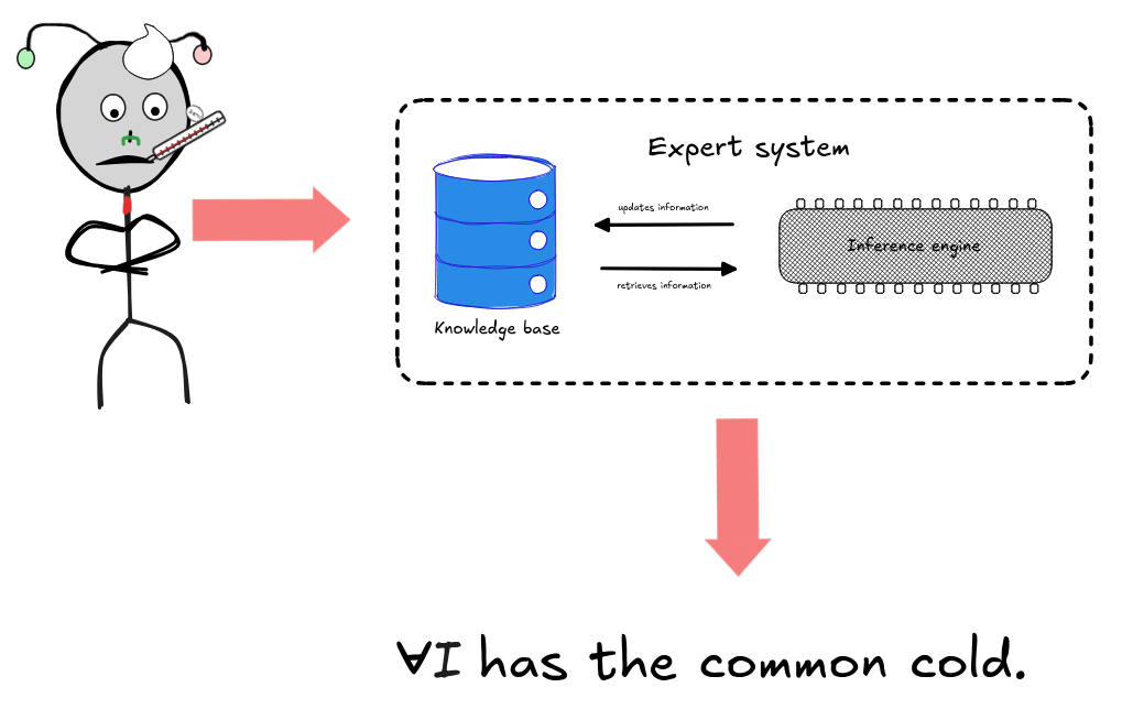 If we present the system with the known fact that our patient does have a runny nose, a sore throat, and a mild fever, the inference engine could easily derive that the patient likely has a common cold. If some symptom is missing, say the patient doesn’t have a fever, the engine can no longer validly infer that the patient has a cold—it could be something else.