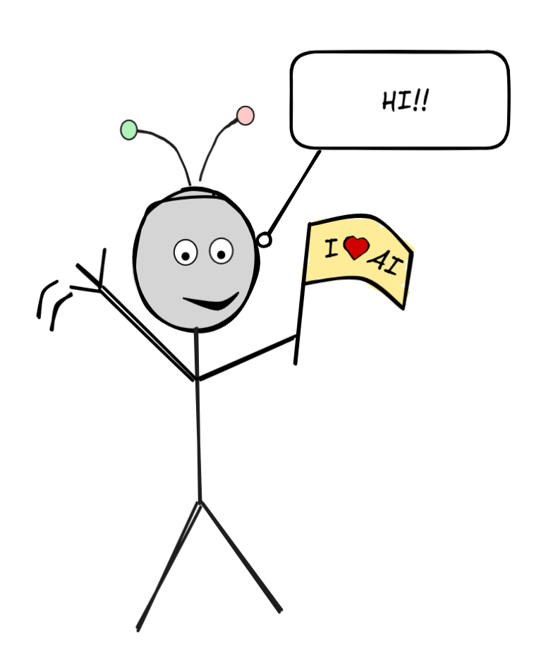 The robot cat next to the inference is IE (read: “there is”), which is IA ’s pet.