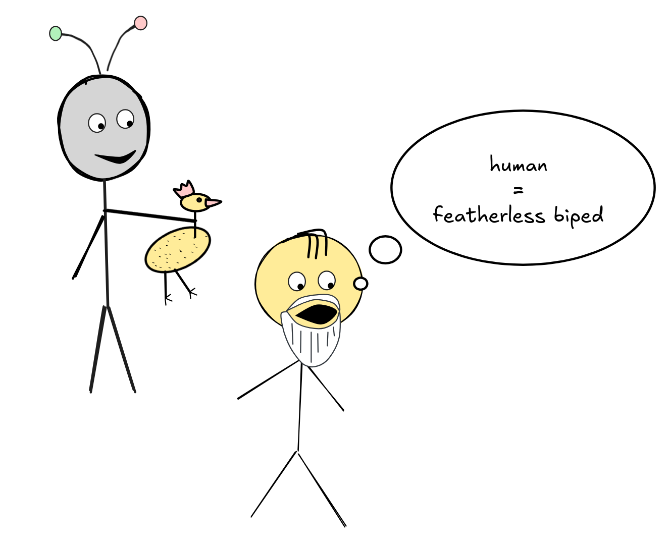 This seemingly unrelated anecdote from the history of philosophy illustrates a very relevant problem for logic-based AI systems: identifying the precise conditions under which concepts apply can be incredibly hard—even in seemingly simple cases (being a human) and even for clear experts (Plato was at the forefront of scientific research in his time, and he certainly could identify humans).