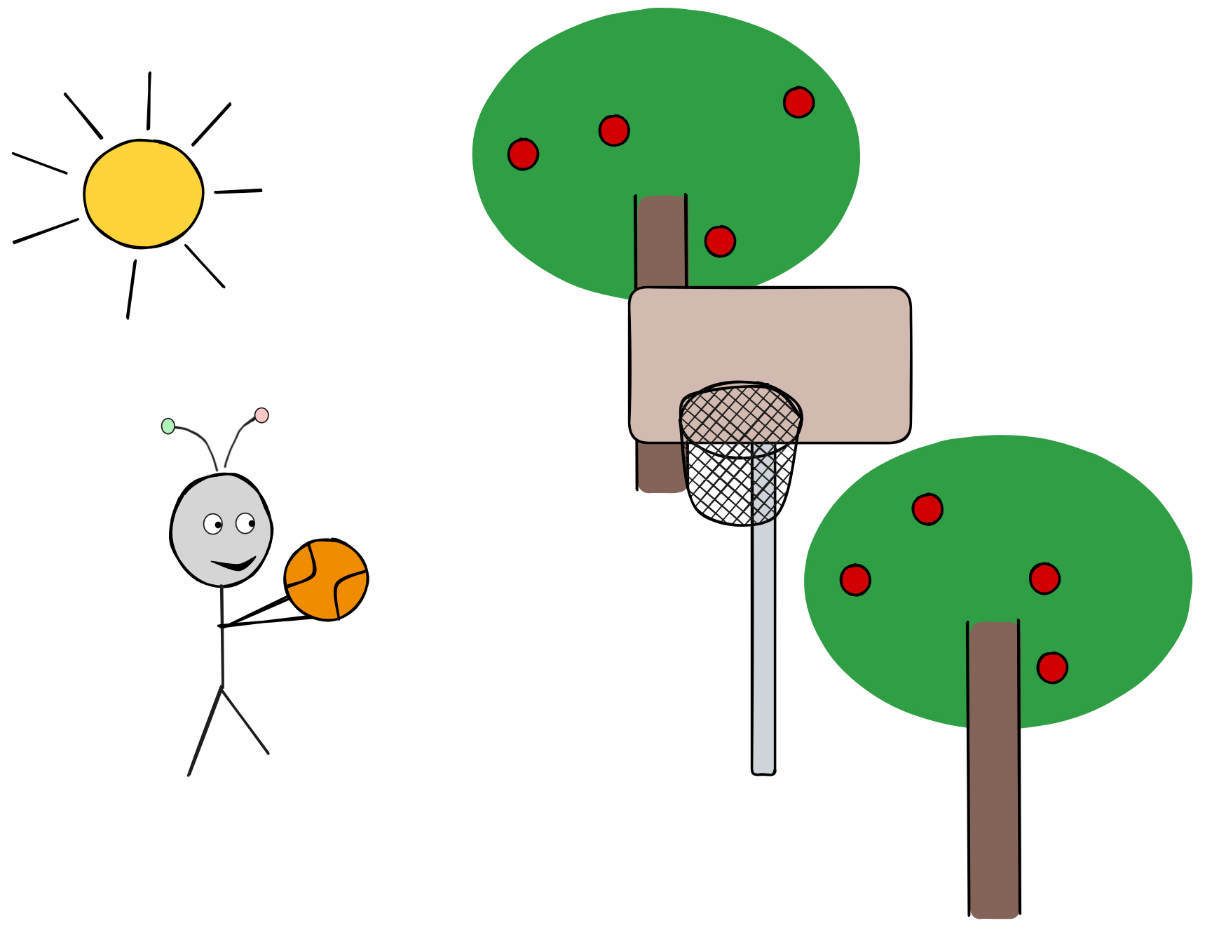In this model, the physicist would assign a mass to the ball, represents the ball as a point in 2-dimensional Euclidian space, and treats the forces acting on the ball as vectors. Assuming that there’s no air resistance, it’s a high-school level exercise to calculate where the ball will land using the laws of classical mechanics (can you still do it?).