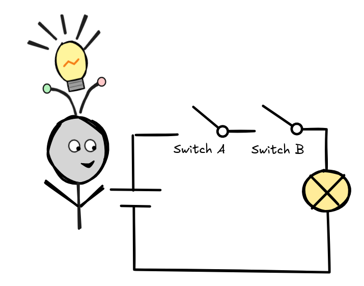 To illustrate the idea, take this simple circuit with two switches, A and B:
