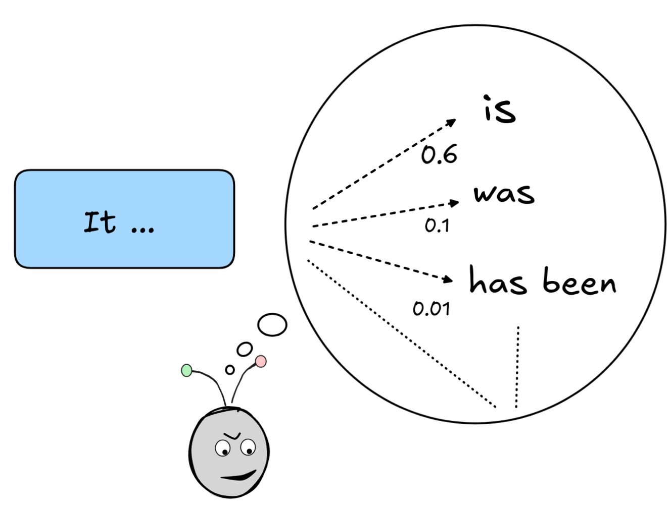 LLMs have the impressive ability to mimic human language behavior. LLMs are the underlying technology of chatbots, like ChatGPT, who interact with humans by generating text responses to prompts—questions, instructions, descriptions, and the like. These responses are generated by repeatedly outputting the most likely next expression given the prompt and output generated so far. ChatGPT is so good at human-style interaction that it can fool you into thinking you’re talking to a human.